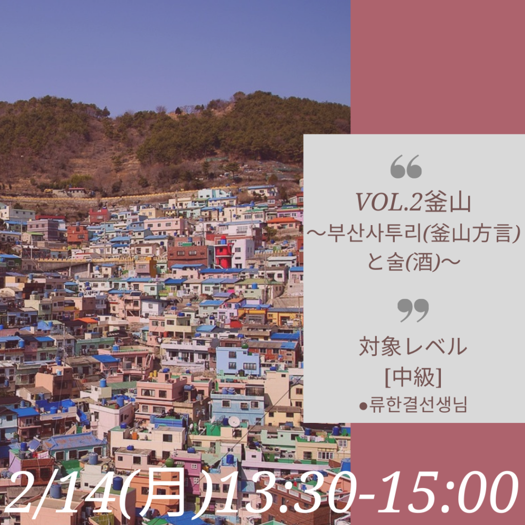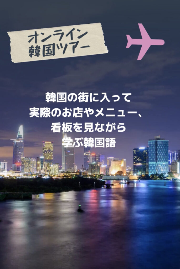 韓国の街を散策しながら韓国語を学ぶ韓国語講座 場所 ZOOM(6名様まで) 参加費 2000円 前回の旅はこちら! ジミン釜山ゆかりの地巡り 釜山在住、釜山に詳しくなれるアカウントを運営中 えぎさん監修 instagramアカウントはこちら こちらのツアーは終了しました 今月のツアー お申し込み、お問い合わせはこちらへお願いします。 過去のツアー 2021.10.24(日)21:00-22:30 2021.11.14(日)16:00-17:30 2021.11.6(土)17:00-18:30 2021.11.21(日)21:00-22:30 2021.11.28(日)21:00-22:30 2021.12.26(日)21:00-22:30 2021.12.12(日)21:00-22:30 2021.12.5(日)16:00-17:30 当講座はZOOMで行います お問い合わせは公式LINEへ お願い致します。